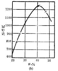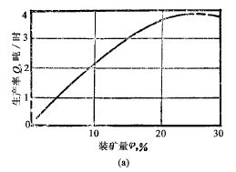 于71~75%范圍內(nèi)磨機的處理能力更高,轉速率低于或高于這個范圍時處理能力便趨于降低。磨機輸入功率與轉速率的關系和生產(chǎn)率與轉速率的關系相似,按磨碎每噸產(chǎn)品的動力消耗計,則一般隨轉速率降低而減少。